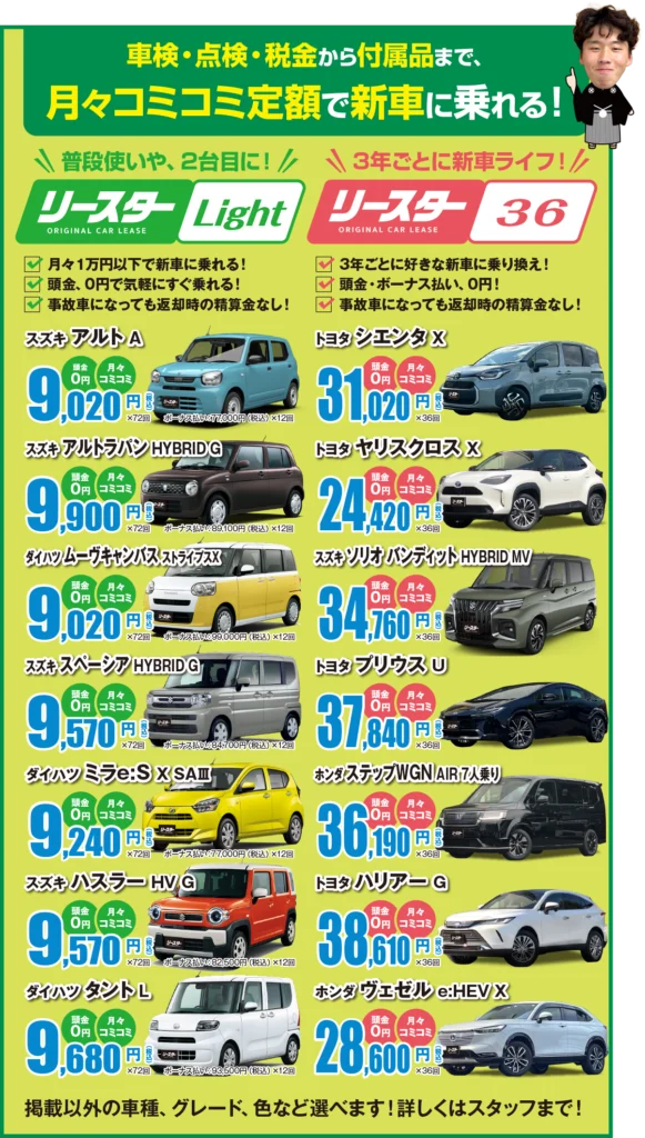 そして、いよいよ、オリジナル定額制カーリース「リースター」が満を持してスタート!